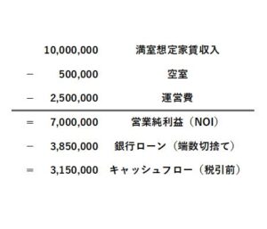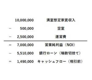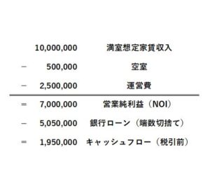 収益物件は数千万円~数億円単位になるため、ほとんどの方が銀行融資を利用します。銀行融資条件次第で、キャッシュフローが大きく変わるため、銀行の融資条件が収益物件の利回りを左右します。